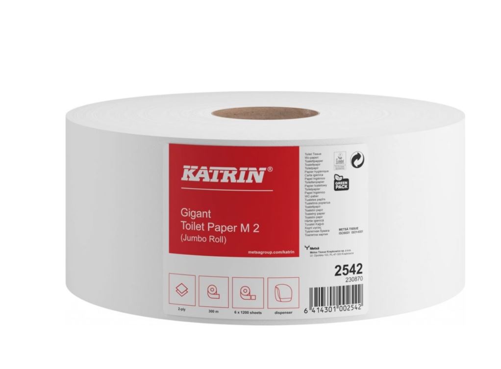 Skladem 392 ks. Jumbo Giant role 28cm 2vr/250 KatrinPlus PeMi kód: 625834 EAN: 6414301002566 2vrstvý toaletní papír pro využití do velkokapacitních zásobníků, průměr kotouče 280 mm, balení 6 rolí. Vlastnosti Jumbo toaletní papír: 2vrstvý ucelené balení 6 rolí v balení průměr role 280 mm návin role 250 bílý 69 Kč Do košíku
