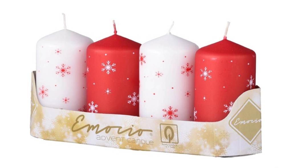 Skladem Adventní svíčky 4ks bílé PeMi kód: 703191 EAN: 8594017672623 Sada adventních svíček, válec, postupka 4 kusy. Rozměr jednotlivých válců: - 50 x 60 mm, doba hoření: cca 21 hodin - 75 x 60 mm, doba hoření: cca 24 hodin - 90 x 60 mm, doba hoření: cca 27 hodin - 105 x 60 mm, doba hoření: cca 30 hodin. 97 Kč Do košíku