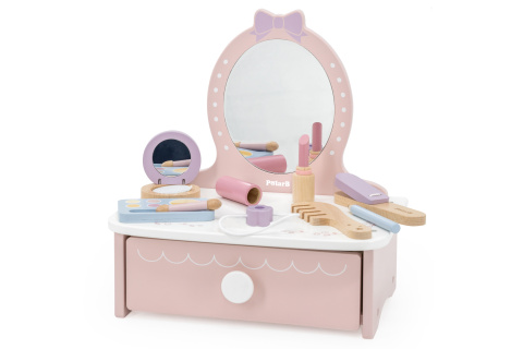Sleva 10% Dodání do 5 pracovních dnů Dřevěný stoleček toaletka PeMi kód: 738055 EAN: 6971608442711 Dřevěná toaletka o rozměrech 26,5x28,3x18,5 cm. Balení obsahuje stoleček a dřevěné doplňky jako např. hřebínek, kulmu nebo make-up. Baleno v krabici. Rozměry balení 28,5x24x12 cm. Věk 3+ 620 Kč 561 Kč Do košíku