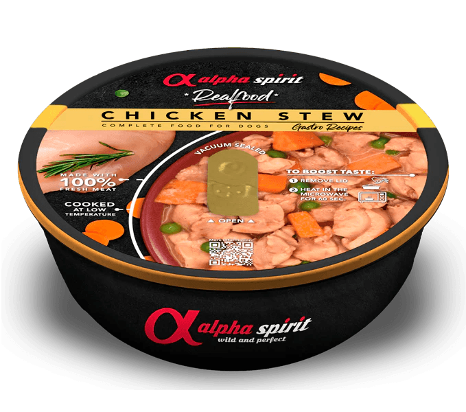 Skladem Alpha Spirit Real Food Duck 280g PeMi kód: 736615 EAN: 8437015969367 Dušené pomalým vařením 100% čerstvé kachní maso v omáčce se sladkými bramborami, hráškem, mrkví, petrželí, kurkumou a rajčaty, vařené při nízkých teplotách, vakuované do znovu použitelné misky. pro správné množství krmiva použijte krmnou tabulku podle věku, úrovně fyzické aktivity a 101 Kč Do košíku