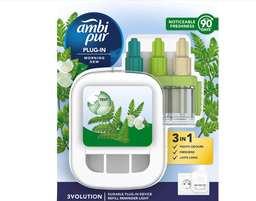 Skladem Ambi Pur 3volution osvěžovač vzduchu + náhradní náplň Morning Dew, 20 ml PeMi kód: 715574 EAN: 8700216737159 Ambi Pur 3volution osvěžovač vzduchu + náhradní náplň Morning Dew s technologií OdourClear nepřekrývá, ale skutečně eliminuje nepříjemné vytrvalé pachy a zanechává lehkou svěží vůni až 90 dnů (pokud se používá 12 hodin denně při nastavení nejnižší úrovně odpařování) 220 Kč Do košíku