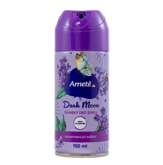 Skladem Ameté deo sprej Dark moon 150ml PeMi kód: 716627 EAN: 8590273645951 Ameté dámský DEO sprej Dark Moon poskytuje dlouhotrvající svěžest. Dodává pocit jistoty a ochrany po celý den. Obsahuje Allantoin se zklidňujícími a regeneračními účinky, které pomáhají zmírnit podráždění a podporují zdravou obnovu pokožky 48 Kč Do košíku