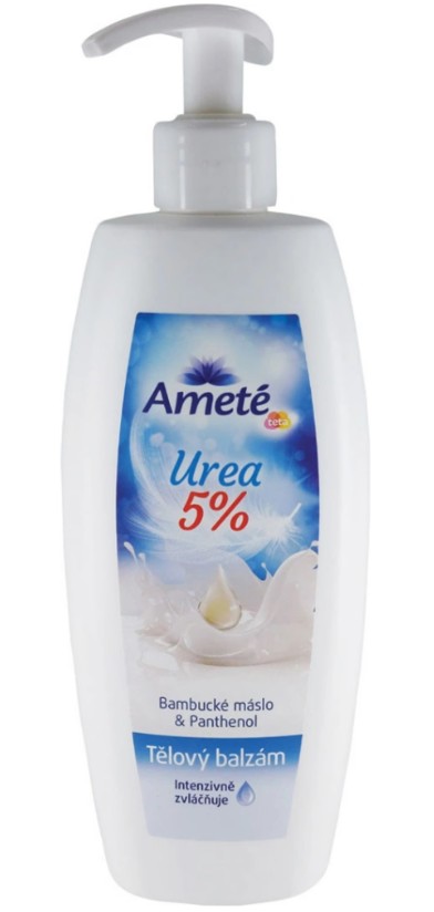 Skladem Ameté tělový balzám 400ml pumpa zvláčňu PeMi kód: 716802 EAN: 8590273640086, 8590273647351 Zvláčňující tělový balzám s vysokým obsahem urey, bambuckým máslem, panthenolem, vitamínem E a allantoinem. Je vhodný pro velmi suchou pokožku, které dodává hydrataci. Zanechává pokožku hladkou a jemnou. Vhodný pro každodenní použití. 77 Kč Do košíku