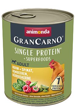 Skladem Animonda pes GRANCARNO konz. Superfoods kuřecí 800g PeMi kód: 717237 EAN: 4017721824392 Gran Carno Superfoods kuře se špenátem, malinami a dýňovými semínky je kvalitní mokré krmivo pro psy od značky Animonda. Tento produkt obsahuje vysoký podíl kvalitního masa kuřete, které je doplněno o špenát, maliny a dýňová semínka 130 Kč Do košíku