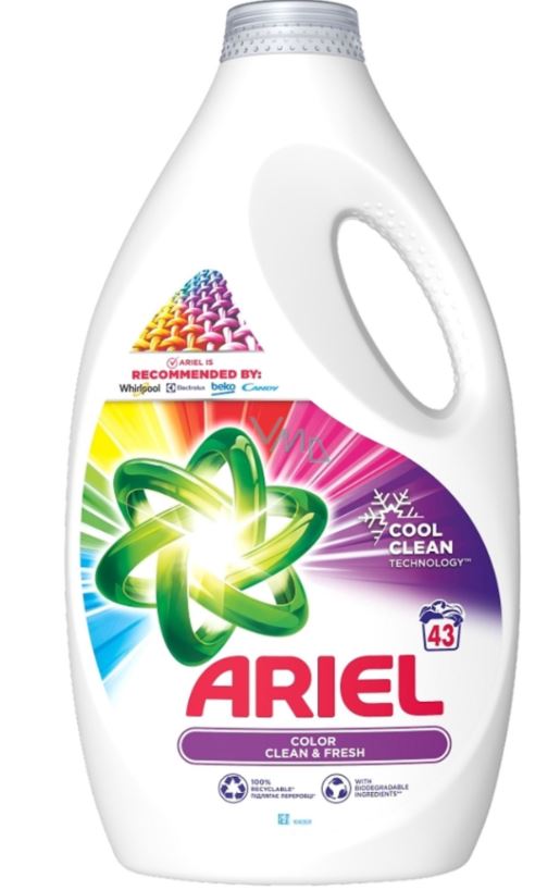 Skladem Ariel gel Color 100pracích dávek PeMi kód: 713647 EAN: 8700216692007 Prací gel - univerzální, na barevné prádlo, odstranění skvrn při praní, zachování intenzity barvy a pro běžné praní, vydrží až na 100 Praní 780 Kč Do košíku