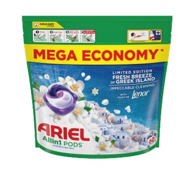 Skladem Ariel All-in-1 PODS Kapsle na praní Fresh Breeze of Greek Island 60 PD PeMi kód: 730635 EAN: 8700216971225 Objevte limitovanou edici pracího prostředku Ariel All-in-1 PODS: Fresh Breeze of Greek Island s osvěžující vůní jasmínu a mořské soli. Dodávají prádlu dokonalou čistotu a dlouhotrvající svěžest. Pro maximálně svěží požitek využijte celou kolekci: Zkombinujte je s aviváží Lenor Fresh 709 Kč Do košíku