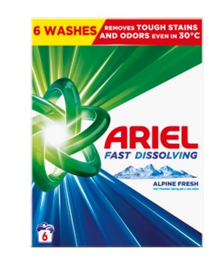 Skladem Ariel prášek Alpine Fresh BOX 6 pracích dávek PeMi kód: 716401 EAN: 8700216733670 85 Kč Do košíku