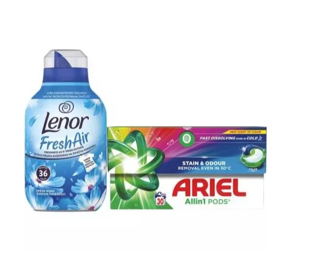 Skladem Ariel kapsle 30PD +Lenor aviváž 36PD PeMi kód: 731830 EAN: 8006530126816 Ariel Color All in1 Pods kapsle na praní 30 pracích dávek Ariel kapsle 30PD +Lenor aviváž 36PD 441 Kč Do košíku