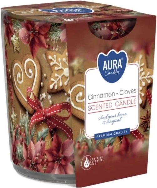 Aura vonná svíčka ve skle skořice s hřebíčkem, 100 g