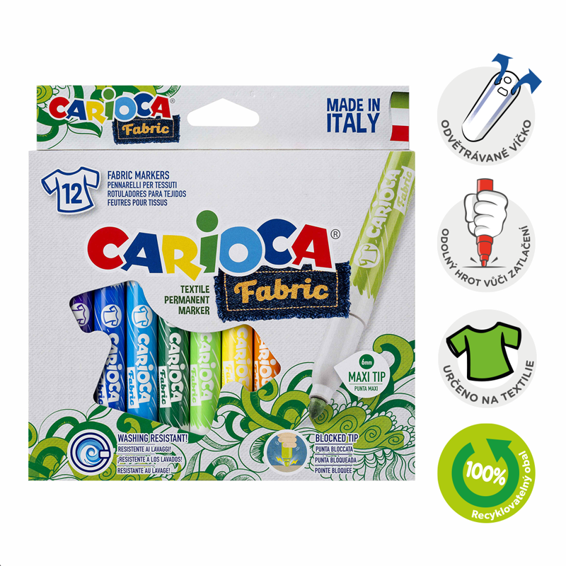 Skladem Popisovače na textil Carioca 12ks PeMi kód: 721153 EAN: 8003511409579 Navrhněte si vlastní a originální design oblečení jako z Itálie! Kvalitní fixy italské značky Carioca, s odolným hrotem proti vtlačení. Jsou určené pro všechny tvořivé nadšence školního věku. Stačí je vzít do ruky, pomalovat textil a nechat uschnout. Po aplikaci permanentní 228 Kč Do košíku