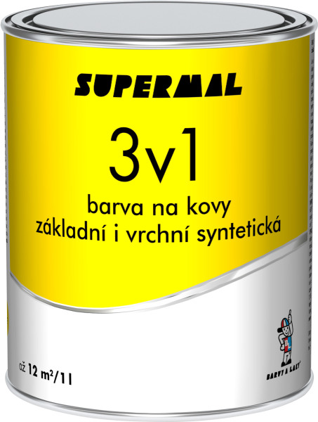 Skladem Supermal 3v1 S2177 0570 zeleň tmavá vrchní syntetická barva na kovy, 2,5 l PeMi kód: 716330 EAN: 8591235099447 Jednovrstvá polomatná barva spojující vlastnosti základního antikorozního nátěru, mezivrstvy a současně vrchní barvy. 949 Kč Do košíku