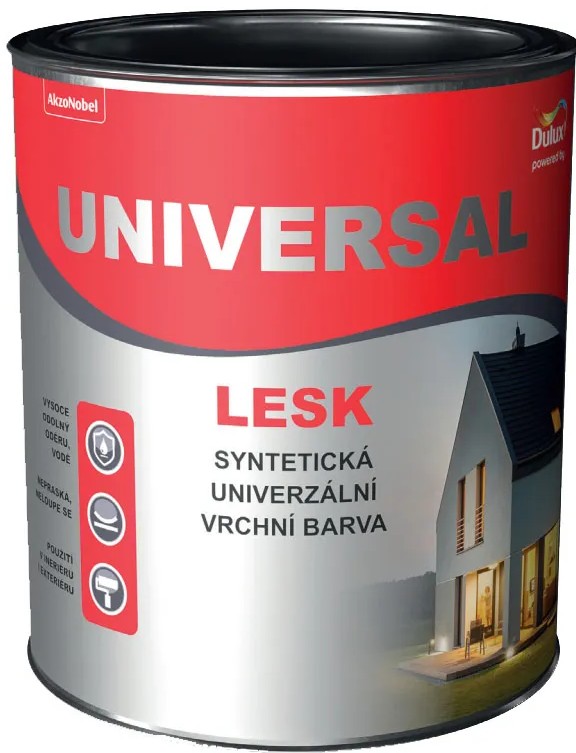 Skladem UNIVERSAL barva 0,75l hněď čokolad 2430 PeMi kód: 722434 EAN: 8590627114560, 8590627982824 Dulux Universal lesk je vrchní barva vhodná na dřevo, kov i jiné materiály k univerzálním nátěrům, Vyznačuje se rychlým zasycháním, vysokou mechanickou odolností, výbornou zpracovatelností a širokou škálou barevných odstínů, Dulux Universal lesk má vysokou vydatnost, dobrý rozliv, 331 Kč Do košíku
