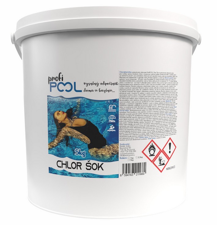 Skladem Probazen Chlor Šok k rychlé dezinfekci bazénu, 1,2 kg PeMi kód: 638432 EAN: 8594019361143, 8594019365233 Granulát s obsahem 70 % aktivního chloru k rychlé dezinfekci s možností koupání již po krátké době po aplikaci. Před aplikací přípravku zkontrolujte pH vody příslušným testerem, nastavte hodnotu pH na 6,8-7,6 pomocí přípravků pH MINUS nebo pH PLUS 244 Kč Do košíku
