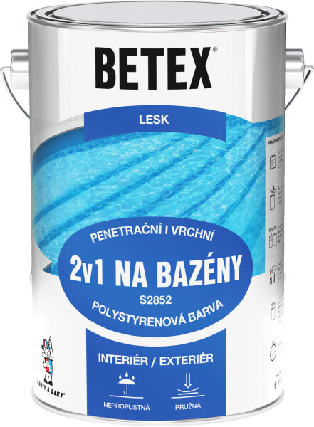 Skladem Betex s2852 2v1 základní i vrchní barva na bazény 0440 tmavě modrá, 4 kg PeMi kód: 107321 EAN: 8591235039993 Barva na bazény BETEX 2v1 s2852 se používá jako penetrační i vrchní nátěr a je určena k nátěrům betonových podkladů, zdiva a omítek vystavených účinkům vody , vodním parám nebo vysoké relativní vlhkosti. Barvu je možno použít také k nátěrům bazénů a kovových nádrží 1 519 Kč Do košíku