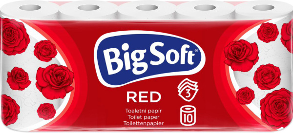 Toaletní papír Big Soft Red je velmi jemný toaletní papír 3 vrstvý. Vyrobeno ze 100% celulozy. 10 role v balení. 150 útržků v roli. Toaletní papír Big Soft Red je velmi jemný toaletní papír 3vrstvý. Vyrobeno ze 100% celulozy. Vlastnosti Big Soft Red toaletní papír: 3vrstvý, 10 role v balení, 150 útržků v roli, 17,6 metrů 1 role, 100% celuloza, bílý.