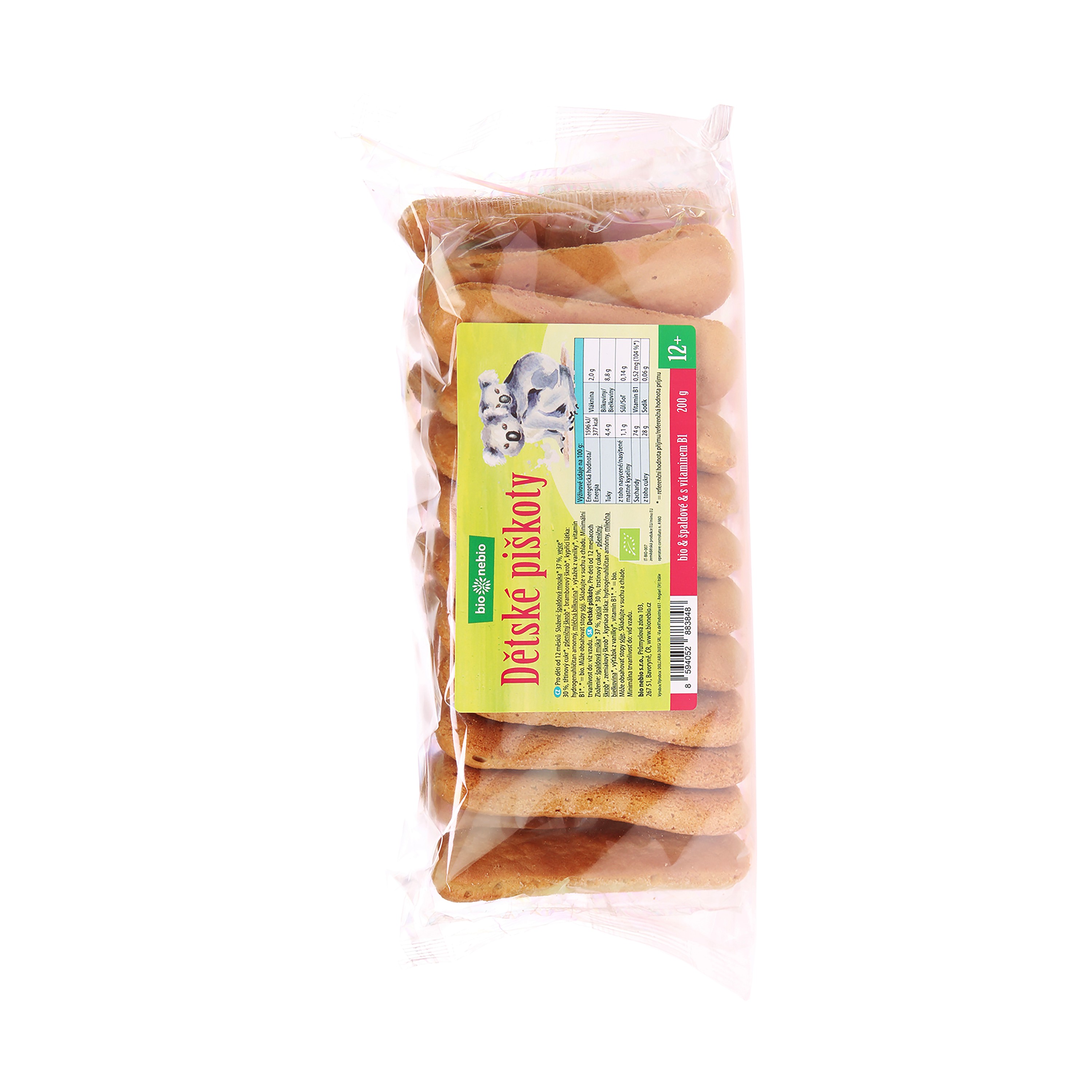 Dodání do 3 pracovních dnů Piškoty špaldové dětské 200 g BIO BIO NEBIO PeMi kód: 712919 EAN: 8594052883848 ŠPALDOVÁ MOUKA* 37 %, VEJCE* 30 %, třtinový cukr*, PŠENIČNÝ ŠKROB*, bramborový škrob*, kypřící látky: hydrogenuhličitan sodný, hydrogenuhličitan amonný, MLÉČNÁ BÍLKOVINA*, výtažek z vanilky*, vitamín B1*. Může obsahovat stopy sóji. Vhodné pro děti od 12 měsíců 75 Kč Do košíku