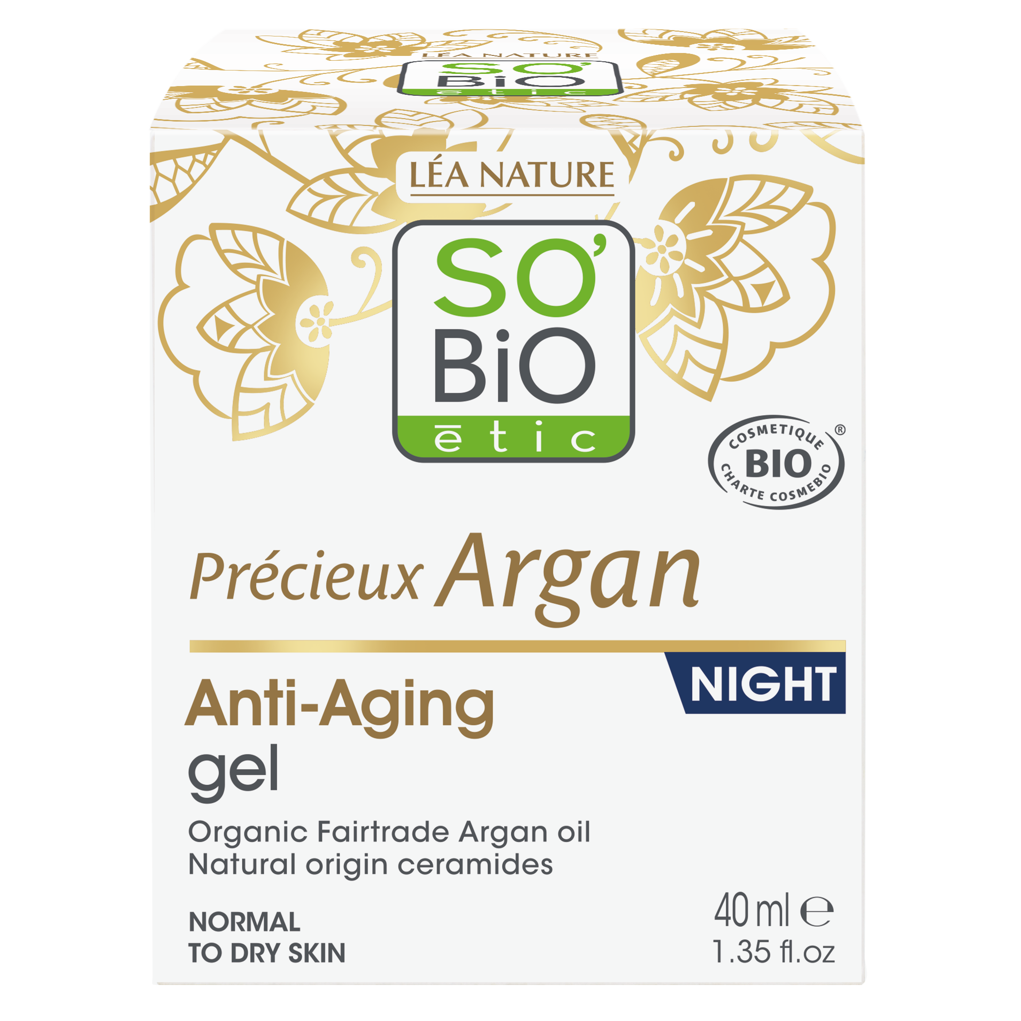Dodání do 5 pracovních dnů SO’BiO étic Anti-age Precieux Argan Gel noční BIO (50 ml) - regeneruje a vyhlazuje pleť PeMi kód: 731958 EAN: 3517360024272 SO’BiO étic Anti-age Precieux Argan noční gel BIO (50 ml) je šetrná přírodní péče, díky níž se pleť přes noc krásně zregeneruje a vyhladí. Gel, který se po kontaktu s pokožkou promění v příjemný hedvábný olejíček, jemně zvláčňuje, vyživuje a zpevňuje pleť a zároveň obnovuje její přirozenou 359 Kč Do košíku