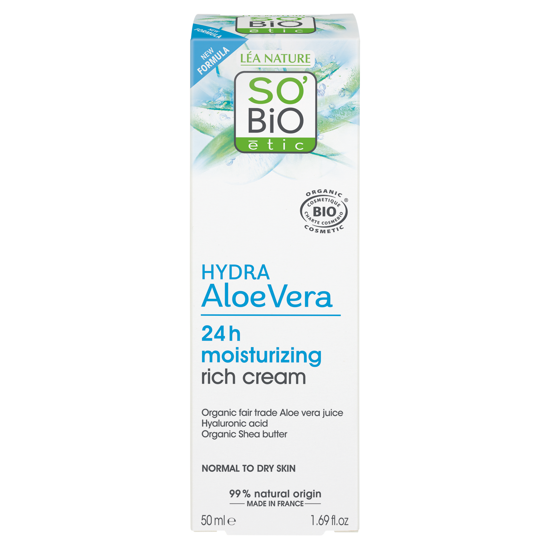 Dodání do 5 pracovních dnů SO’BiO étic Krém bohatě hydratující denní s Aloe vera BIO (50 ml) - s kyselinou hyaluronovou PeMi kód: 731907 EAN: 3517360004854 SO’BiO étic Krém bohatě hydratující denní s Aloe Vera BIO je ideální péčí o normální až suchou pleť, kterou příjemně zvláčňuje a chrání po celý den. Díky 99 % přírodních složek včetně čisté šťávy aloe vera a kyseliny hyaluronové intenzivně hydratuje, zklidňuje podráždění a podporuje regeneraci 229 Kč Do košíku