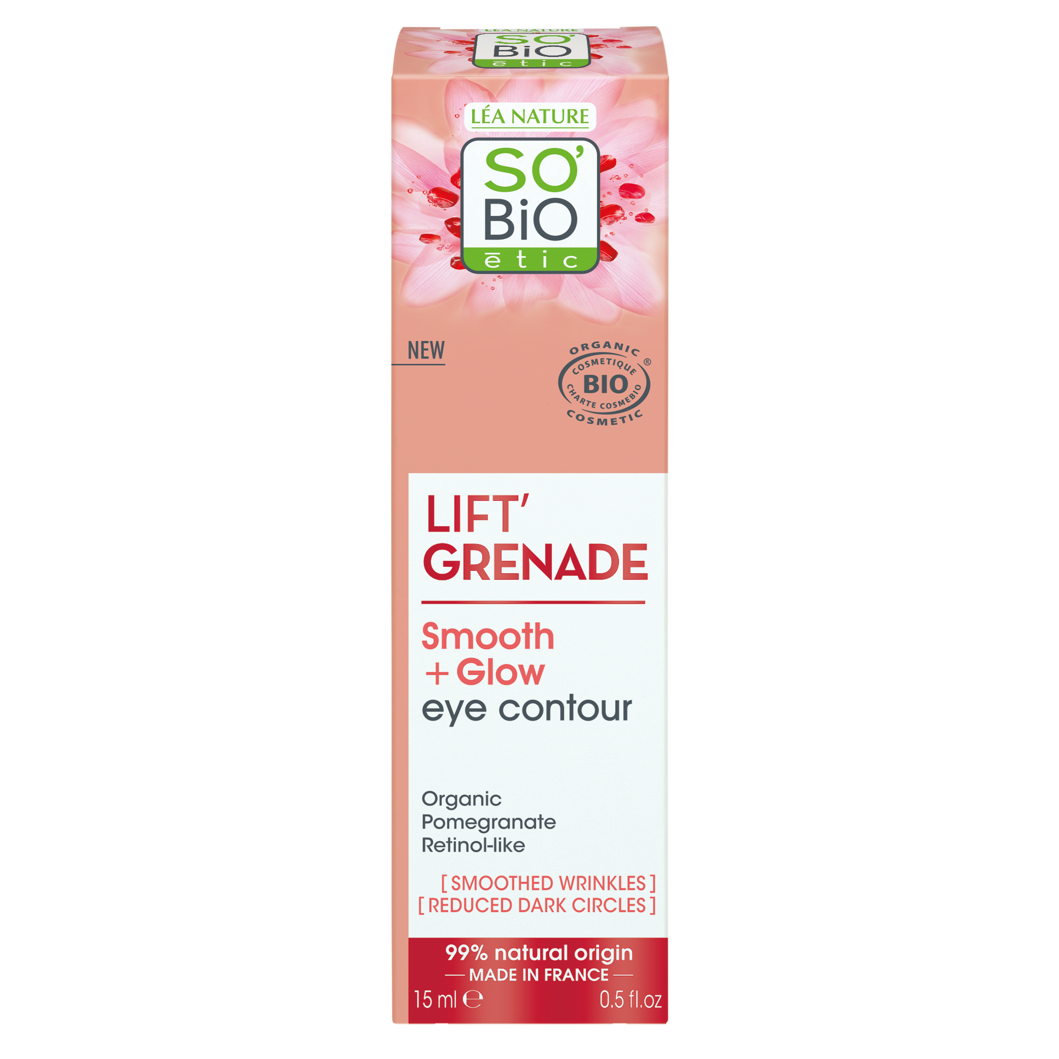 Dodání do 5 pracovních dnů SO’BiO étic Péče o okolí očí Lift´´Grenade BIO (15 ml) - s granátovým jablkem PeMi kód: 731913 EAN: 3517360024760 SO’BiO étic Lift'Grenade BIO představuje unikátní přírodní péči, speciálně navrženou pro citlivé okolí očí. Obsahuje kombinaci účinných složek, jako jsou bio extrakt z granátového jablka a rostlinná alternativa retinolu, díky nimž pokožku jemně vyhlazuje, rozjasňuje a zmírňuje známky únavy či 429 Kč Do košíku