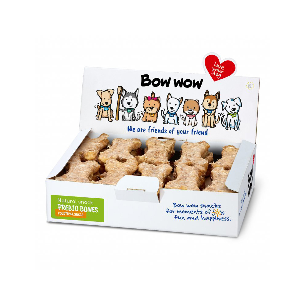 Skladem Bow Wow Naturální kost s drůbežími játry a jukou 30ks PeMi kód: 724819 EAN: 8595042656367, 8595042660425 Naturální pochoutka pro psy z hovězí kůže bez přidaných barviv a konzervantů. Neobsahuje lepek. Napomáhá redukovat zápach z výkalů, detoxikovat organismus a podporovat zdravou střevní mikroflóru Vašeho psa. Složení: hovězí kůže, kolagen, drůbeží játra 16%, kalcium Doplňkové látky: 458 Kč Do košíku