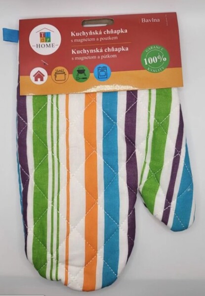 Dodání do 3 pracovních dnů Chňapka kuchařská, 27 x 19 cm PeMi kód: 642528 EAN: 8591177049449 Chňapka - rukavice je vhodná pro chycení a přenášení horkých nádob nebo pečících plechů z rozpálené trouby nebo na zvedání rozpálené pokličky. Tato chňapka se dá také použít jako praktická podložky pod rozpálenou nádobu. Chňapka má praktické poutko pro zavěšení na háček. Materiál - bavlna 59 Kč Do košíku