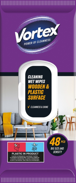 Vortex vlhčené čisticí ubrousky na dřevo a nábytek, 48 ks