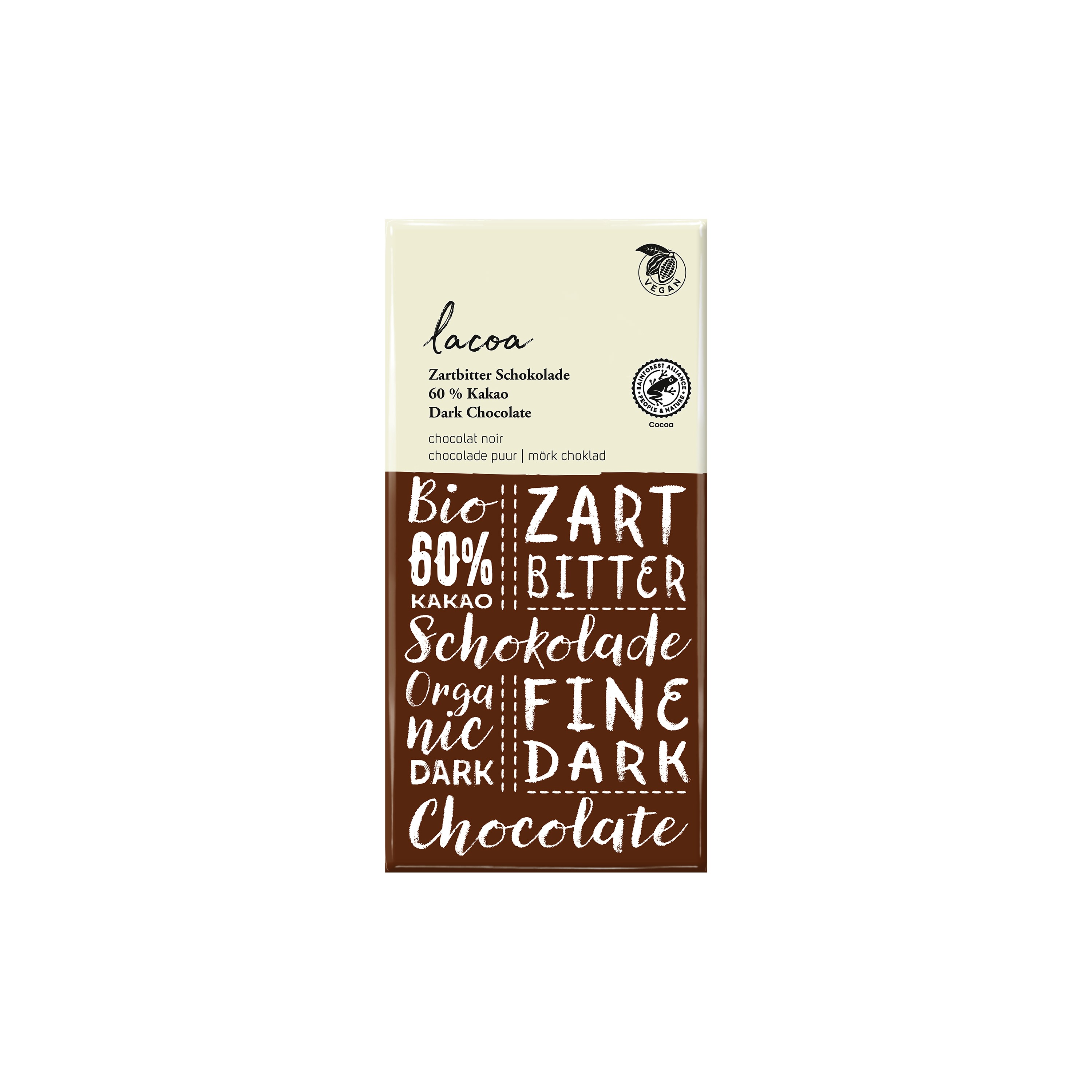 Dodání do 3 pracovních dnů !X! Čokoláda hořká 60 % 100 g BIO LACOA PeMi kód: 712841 EAN: 4044889001662 Kakaová hmota*, přírodní třtinový cukr*, kakaové máslo*. Obsah kakaové sušiny nejméně 60 %. Může obsahovat stopy skořápkových plodů, mléka a lepku. *produkt kontrolovaného ekologického zemědělství<p><strong>Kalorická hodnota/energie (na 100ml):</strong>2413kJ/552kcal 70 Kč Do košíku