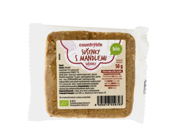 Dodání do 3 pracovních dnů Sušenky s mandlemi 50 g BIO COUNTRY LIFE PeMi kód: 721011 EAN: 8595016559793 Výtečné křupavé sušenky s mandlemi slazené přírodními sirupy. Jsou vhodné jako svačina do školy či práce . ŠPALDOVÁ mouka* 34 %, palmový olej* (nehydrogenovaný), MANDLE* 11 %, OVESNÉ vločky*, rýžový sirup*, kukuřičný sladový sirup*, celozrnná ŠPALDOVÁ mouka* 7 %, kokos*, jablečná 25 Kč Do košíku