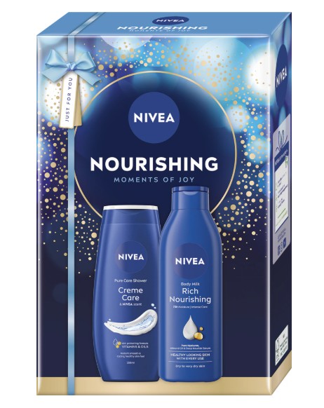 Skladem Dárková kazeta NIVEA (sg,mle) NOURISHING PeMi kód: 733083 EAN: 9005800394152 Sprchový gel NIVEA Creme Care : jemně myje a čistí pokožku celého těla zanechává pokožku hebkou a voňavou nenarušuje mikrobiální vrstvu pokožky s vůní ikonického modrého krému NIVEA provitamíny, vitamíny C a E, vzácné oleje Tělové mléko NIVEA Body Milk : dodává pokožce výživu a 247 Kč Do košíku