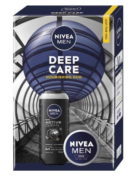 Skladem Dárková kazeta NIVEA MEN (krém,sg) DEEP CARRE PeMi kód: 733087 EAN: 9005800394312 Sprchový gel NIVEA MEN Active Clean : hloubkově čistí pokožku bez vysušování zanechává pokožku hydratovanou a svěží má smyslnou mužnou vůni aktivní uhlí, bez mikroplastů Krém na tvář, tělo a ruce NIVEA MEN Original : dodává pokožce hydrataci, udržuje ji vláčnou ihned se 210 Kč Do košíku