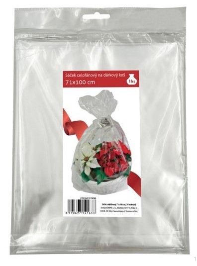 Skladem Sáček na dárk.koš 71x100cm celofán PeMi kód: 735666 EAN: 8590697141633 Celofánový sáček čirý 30 mic rozměr: 71 x 100cm 36 Kč Do košíku
