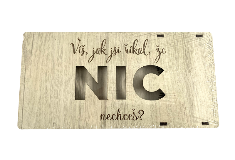Skladem Dárková krabička ¨Nic¨ PeMi kód: 717542 EAN: 8596265227280 Dřevěná dárková krabička na peníze. 61 Kč Do košíku