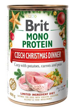 • Tradiční kapr s?bramborovým salátem. Vánoční hostina pro naše čtyřnohé parťáky. 100% ČISTÝ PROTEIN Z?KAPRA Ideální doplněk ke granulím. Pomáhá zlepšit příjem krmiva a doplnit tekutiny Jemné paté pro lepší trávení a snadnější příjem krmiva staršími psy BEZ LEPKU – BEZ SOJI – BEZ GMO