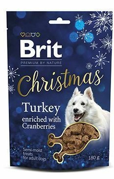 • Brit Premium by Nature Christmas Semi-moist Treats – vánoční poloměkké pamlsky s krůtou a brusinkami pro dospělé psy všech plemen Vánoční pamlsky Brit Premium by Nature Christmas spojují lahodné krůtí maso s brusinkami, které podporují zdraví a dodávají pamlskům jedinečnou chuť