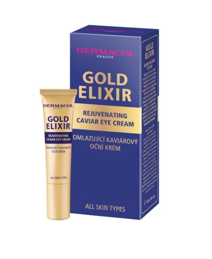 • Gold Elixir omlazující kaviárový oční krém. Speciální oční péče pro velmi zralou pleť s výtažkem z kaviáru, která obnovuje a regeneruje buněčnou strukturu pleti kolem očí a zpomaluje proces stárnutí. Extrakt z cibulky narcisu vyrovnává hluboké vrásky, zpevňuje pleť kolem očí a zvyšuje její