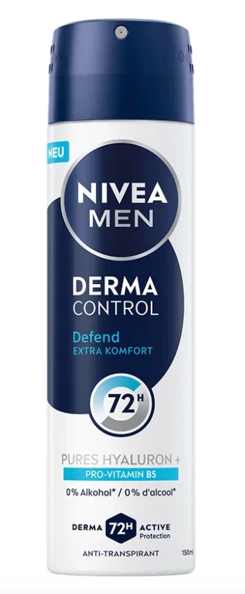 Skladem Nivea MEN AP Derma Control 150ml Defend PeMi kód: 729308 EAN: 9005800390017 Antiperspirant ve spreji Nivea Men Derma Control Defend je navržen pro muže, kteří hledají spolehlivou ochranu proti pocení i vůni, ale zároveň chtějí pečovat o citlivou pokožku podpaží. Klíčové výhody Až 72 hodin ochrany proti nadměrnému pocení a zápachu – spolehlivá 118 Kč Do košíku