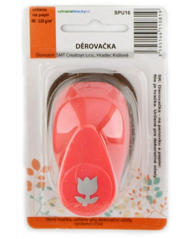 Skladem Děrovačka 16mm Tulipán PeMi kód: 709797 EAN: 8595146112653 Děrovačka pro výtvarnou tvorbu. Postup: 1. pracujte s děrovačkou na pevné a rovné ploše. 2. vložte papír vhodné tloušťky - 90-220 g/m2 a zatlačte na páku statickým tlakem. Nikdy ne úderem na páku. 3. POUŽÍVEJTE POUZE NA PAPÍR 67 Kč Do košíku