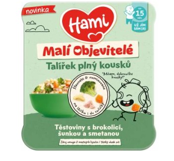 Skladem Hami menu 200g těs brok šunka 15m+ PeMi kód: 718834 EAN: 8590340175398 Hami Malí Objevitelé Těstoviny s brokolicí, šunkou a smetanou od 15. měsíců. Hami talířek Malí Objevitelé plný dobroučkých měkkých kousků pro větší děti, které už chtějí jíst samy lžičkou... nebo i rukama! Pro Vaše nejmenší jen to nejlepší: • Zdroj Omega-3 mastných kyselin • 115 Kč Do košíku