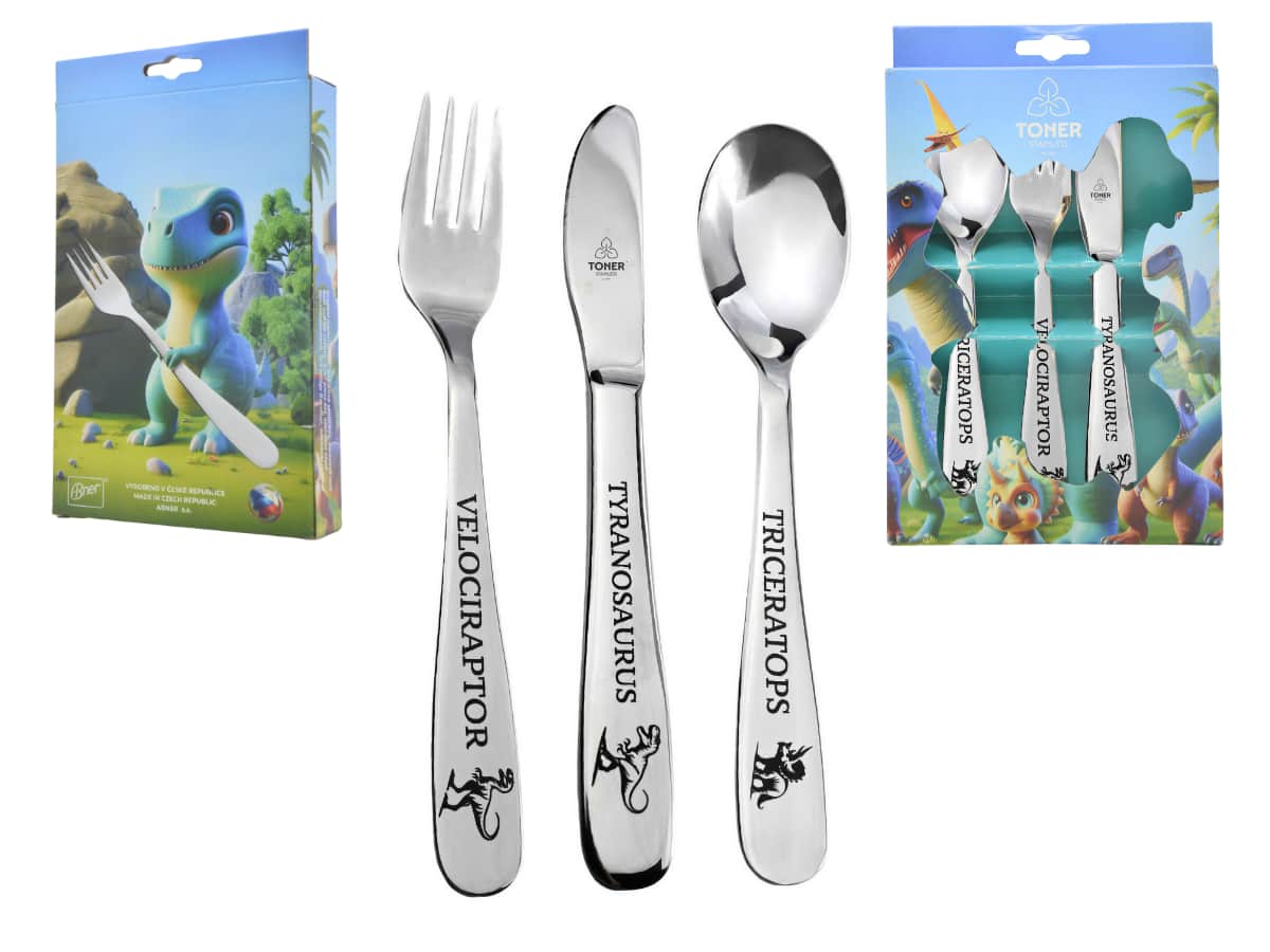 Dodání do 5 pracovních dnů příbor dětský 3-dílný DINO PeMi kód: 715063 EAN: 8590159171901 Obsah balení:Dětská jídelní lžíce 1x,Dětská jídelní vidlička 1x,Dětský jídelní nůž 1x,Materiál: nerez 18/10,Příbor je mechanicky leštěn do vysokého lesku.Příbory jsou hodné do myčky. Dětský 3-dílný příbor DINO je navržen speciálně pro malé děti, aby jim usnadnil a zpříjemnil stolování 564 Kč Do košíku