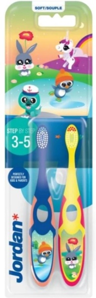 Skladem Jordan Step by Step dětský zubní kartáček, ve věku 3-5 let, 2 ks PeMi kód: 722743 EAN: 7046110043448 Veselý a šetrný pomocník pro každodenní péči o dětské zoubky. 98 Kč Do košíku