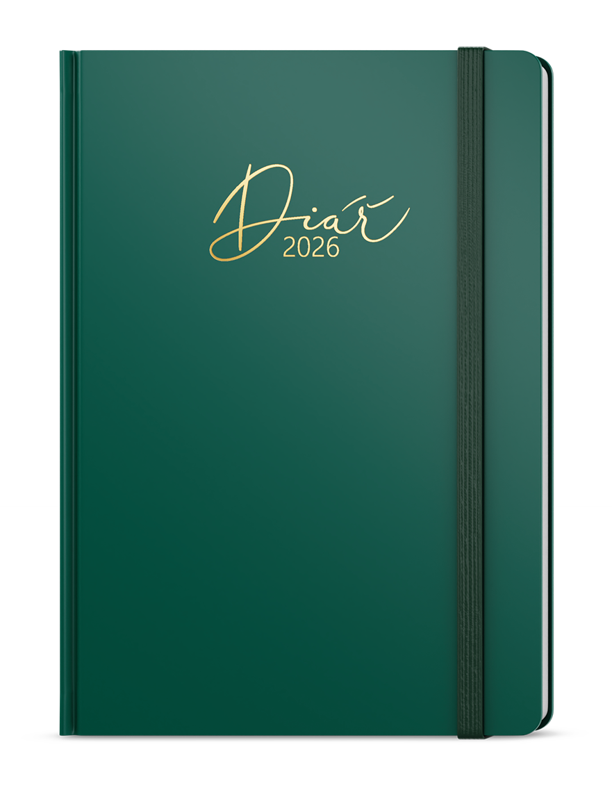 Týdenní diář A5 s gumičkou, jehož potah nese moderní barvu a povrch je potažený nepoškrabatelným laminem, nese efektní zlatou ražbu. Týdenní diář Vám pomůže plánovat celý týden.