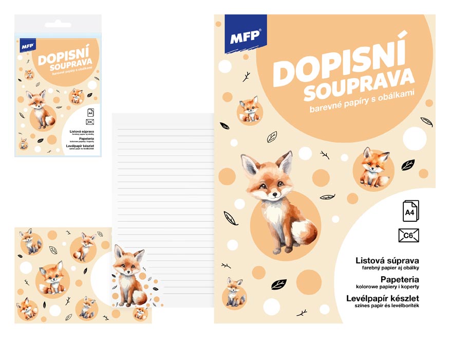 Dodání do 3 pracovních dnů Dopisní papír barevný LUX 5+10 (Liška) PeMi kód: 717634 EAN: 8595724414841 Psaní, které potěší! Dopisní sada s jemným motivem lišky je ideální pro všechny, kdo chtějí svému psaní dodat špetku hravosti a kouzla přírody. Linkované papíry a sladěné obálky promění každý vzkaz v malé dobrodružství 52 Kč Do košíku