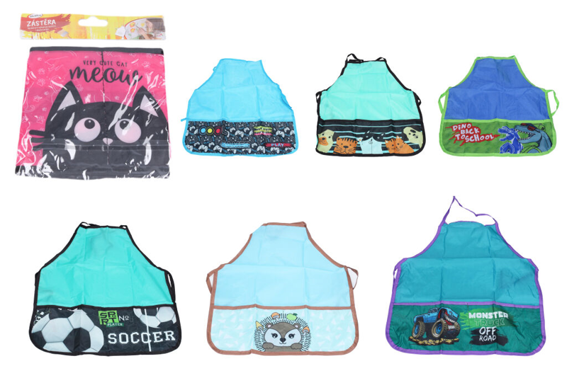 Skladem Zástěra na malování mix motivů PeMi kód: 716471 EAN: 8590331973835 Zástěra na výtvarnou výchovu o velikosti 54 x 44 cm mix. 7 různých motivů: fotbal, kočka, gamer, monster truck, dino, ježek, pes + kočka. 65 Kč Do košíku