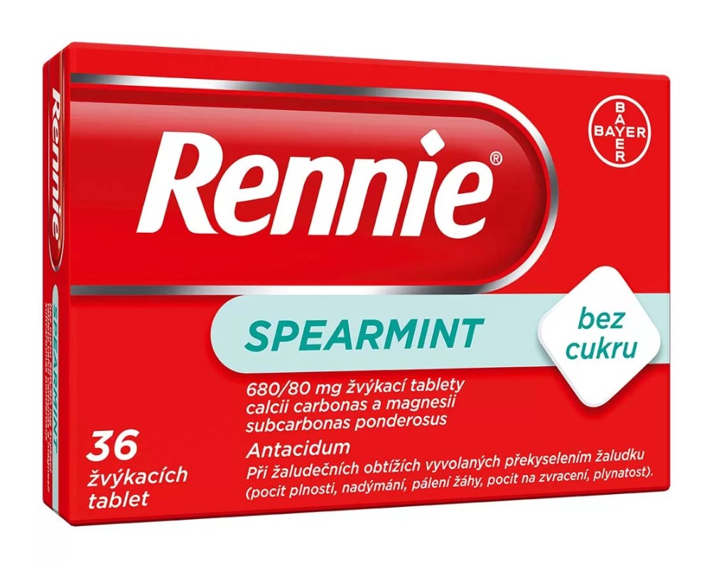 Skladem Rennie 680mg/80mg TBL MND (36ks/kra) PeMi kód: 735592 EAN: 3534510000160 Rennie spearmint bez cukru žvýkací tablety jsou léčivým přípravkem, který chrání sliznici žaludku a tenkého střeva tím, že působí proti překyselení žaludeční šťávy. Žvýkací tablety neutralizují přebytečné žaludeční kyseliny a obnovují normální rovnováhu ve složení žaludeční šťávy 222 Kč Do košíku