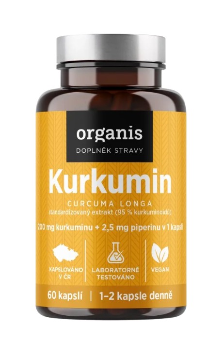 Skladem Organis Kurkumin (60cps/bal) PeMi kód: 735831 EAN: 8595674674272 Prémiový doplněk stravy v rostlinných kapslích, který kombinuje sílu kurkumy (Curcuma longa) a černého pepře (Piper nigrum) v pečlivě vyváženém poměru. Standardizovaný extrakt z kurkumovníku obsahuje 95 % curcuminoidů, zatímco extrakt z pepře přidává přírodní piperin pro lepší využití účinných 325 Kč Do košíku
