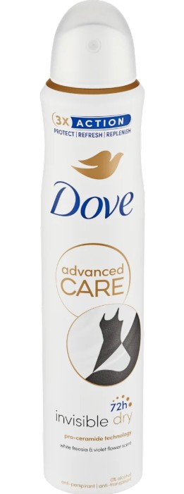 Skladem Dove Advanced Care AP 200ml Invisib Dry PeMi kód: 713629 EAN: 8720181291951 Dove Advanced Care antiperspirant sprej Invisible Dry pro 72hodinovou ochranu, svěží podpaží, a navíc bez skvrn na oblečení. Antiperspirant sprej Dove Invisible Dry je první antiperspirant, který byl vyvinut tak, aby nezanechával bílé stopy na stovce barev. 109 Kč Do košíku