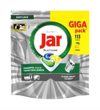 Skladem Jar tab (71ks/bal) PlatPlus MAXI PeMi kód: 740317 EAN: 8006530121705 Jar Platinum + kapsle Lemon 75 ks Kapsle Jar Platinum Plus All In One do automatické myčky nádobí zanechávají nádobí čisté jako nové a mají nejlepší čisticí účinky Jaru na odolné zbytky jídla. Pomáhají odstraňovat zašedlost vznikající časem a obnovují původní lesk nádobí 752 Kč Do košíku