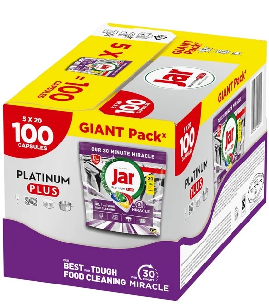 Skladem Jar tab (5x20ks/kra) PlatPlus Miracle G PeMi kód: 740322 EAN: 8006530100991 Jar Platinum Plus 30 Minute Miracle kapsle do myčky 100 ks Kapsle Jar Platinum Plus 30 Minute Miracle vše v jednom jsou ideálním řešením, pokud preferujete rychlé a účinné mytí nádobí i při nejkratších programech 1 228 Kč Do košíku