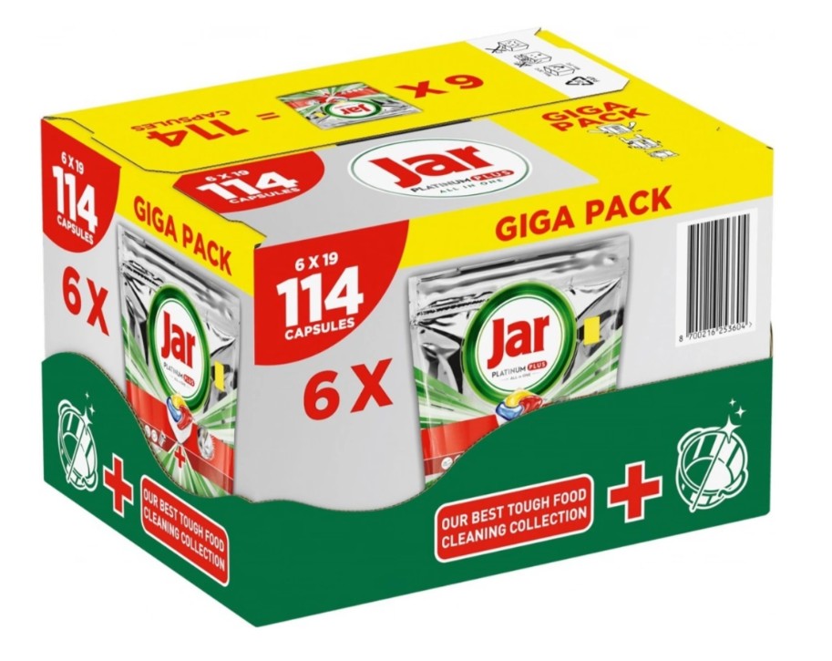 Skladem Jar tab (5x25ks/kra) PlatPlus G PeMi kód: 740323 EAN: 8006530121644 Jar Platinum Plus tablety do myčky spojují v jedné kapsli mycí prostředek, sůl i leštidlo pro kompletní péči při každodenním mytí. Díky rychle rozpustnému obalu pracují i v krátkých programech a odstraňují zaschlé zbytky i šedivění skla 1 228 Kč Do košíku