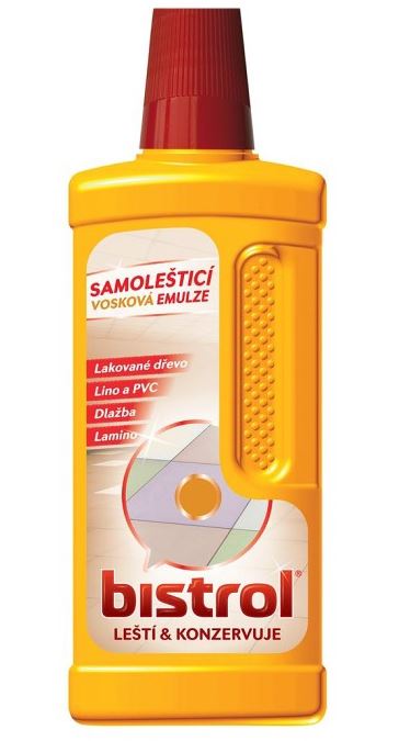 Skladem 413 ks. Druchema Bistrol samoleštící vosková emulze na podlahy, 500 ml PeMi kód: 697632 EAN: 8594825001202 Bistrol se používá k leštění a konzervaci nesavých podlahových krytin (guma, PVC, linoleum, různé druhy dlaždic, přírodní i umělý kámen). Bistrol dodává ošetřeným povrchům hedvábný lesk a vytváří na povrchu ochranný film, který omezuje jejich znečištění a poškození 75 Kč Do košíku